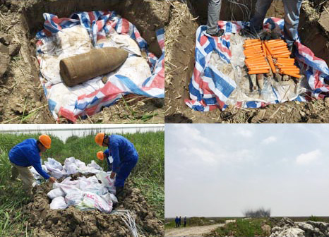 受台州市公安局的委托,ky网页版于2016年5月4日在台州市椒江区三甲街道台州湾循环经济产业集聚区内,对台州市各下辖区县近年来收缴的各类废旧炮弹进行集中统一爆破销毁。销毁的废旧炮弹有炮弹、手榴弹、航弹、地雷、手雷、小型鱼雷等86件(其中最大一枚重达300kg),各种子弹17097件。