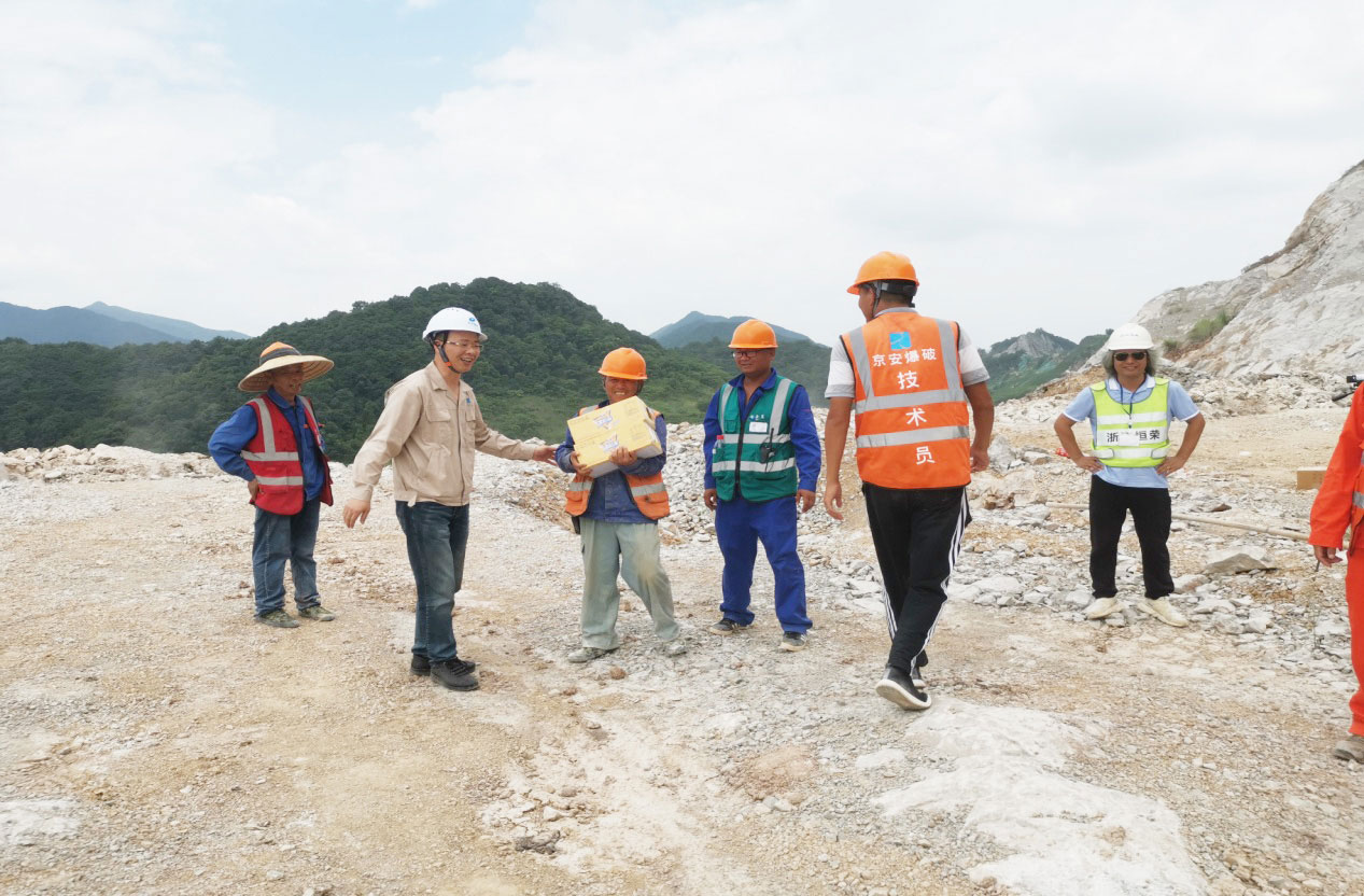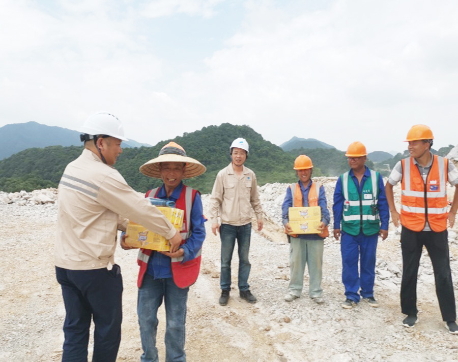 夏日炎炎,酷暑难耐,自出梅后,气温直线上升,高温高热炙烤,正是京安爆破公司各项目部赶工时、抢进度、保产值的施工期,7月21日起,公司总经理申屠建新、副总经理、工会主席崔晓明、副总经理汪刚龙、总工程师辛振坤等班子成员深入一线,分别对公司富阳、石龙山、三门、德清、景文等项目部进行“夏日送清凉”慰问,把夏日清凉饮品和夏季施工服送到员工手中。
