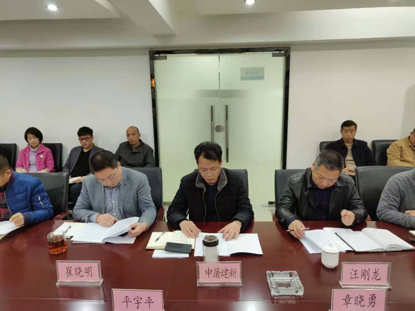 平宇平书记代表新联公司党委作考核动员讲话,并对考核的重要性、要求及流程作了具体说明。公司支部书记、总经理申屠建新代表京安班子成员作了《2019年度党建和党风廉政建设履职情况报告》和年度个人“四述”总结汇报,其他班子成员以书面形式提交个人“四述”履职总结。